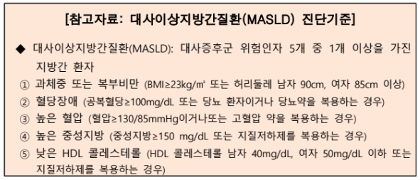 대사이상지방간질환(MASLD) 진단기준 /질병관리청