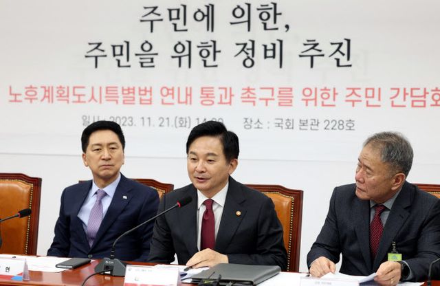 원희룡 장관은 이날 국회에서 열린 ‘노후계획도시정비특별법 연내 통과 촉구를 위한 주민 간담회’에 참석한 직후 기자들과 만나 ‘가장 어려운 지역에서 가장 센 상대와 붙고 싶다’고 주변에 언급한 배경을 두고 이같이 말했다.