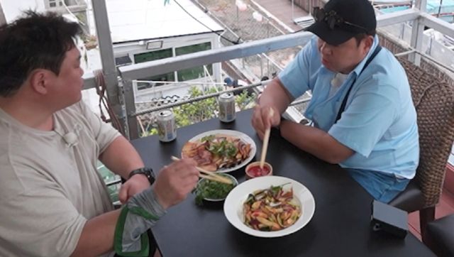 잠시 후 두 사람은 타이오 마을에 위치한 식당의 옥상 테라스에 자리 잡고 앉는다. 이때, 식당 사장이 요리될 대왕 갑오징어 한 마리를 갖고 와 보여주는데, 고무호스 같은 비주얼이 ‘먹보 형제’를 경악케 한다.