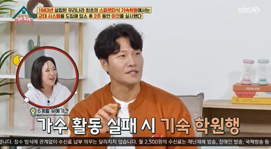 그는 "6개월을 해보고 안 되면 여기 들어가는 조건으로 허락을 받았다"고 말해 놀라움을 안겼다. 이어 김종국은 기숙학원에 대해 "저희 때는 맨날 구보하고 그랬다. 학원에 철창도 있었다"고 말했다.