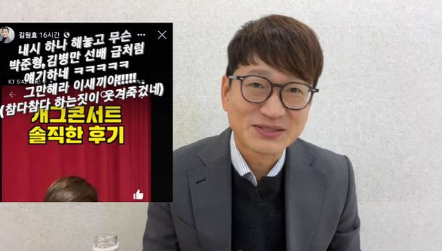 ‘개그콘서트’ 봉숭아학당 코너에 출연 중인 김원효는 지난달 30일과 1일 자신의 SNS 계정에 김영민 관련 게시물을 잇달아 올렸다.