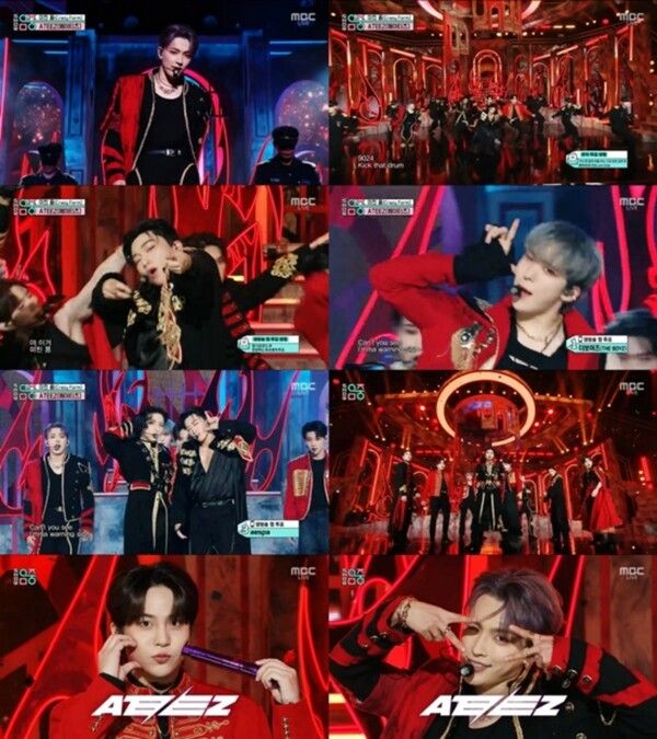 이날 블랙&레드 제복으로 화려한 비주얼을 자랑한 에이티즈는 곡에 어울리는 표정과 제스처로 무대의 몰입도를 한껏 끌어올렸고, 파워 넘치는 에너지로 짜릿한 전율을 선사하며 한시도 눈을 뗄 수 없게 만들었다.