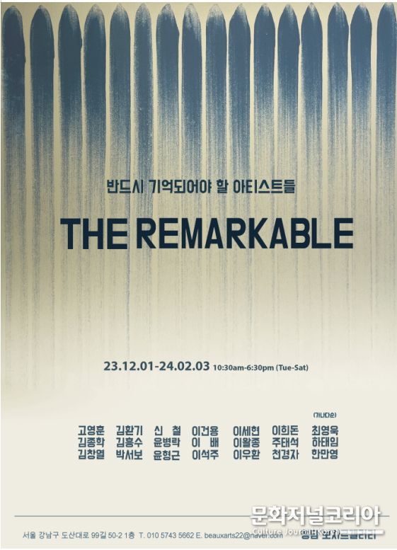문화저널코리아 김영일 기자 | 2023년 12월 1일부터 24년 2월 3일까지 23년을 마무리하고 24년을 맞이하며, 대미를 장식할 ‘반드시 기억되어야 할 아티스트들’ 전시가 열린다.