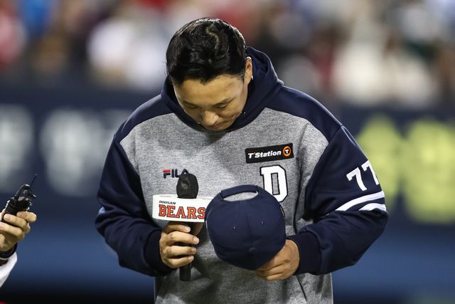 이승엽 감독이 지난 10월 16일 서울 송파구 잠실야구장에서 열린 프로야구 '2023 신한 SOL KBO리그' SSG 랜더스와 두산 베어스의 경기에서 2대3으로 패하며 정규시즌 홈경기를 마무리한 뒤 팬들을 향해 인사하고 있다. / 뉴스1