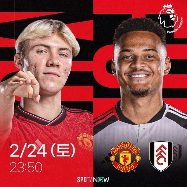 천적 간 맞대결의 승자는 어디일지 많은 기대가 모이는 프리미어리그 26라운드 맨유 대 풀럼 경기는 24일 밤 11시 50분 스포티비 온(SPOTV ON)과 스포티비 나우(SPOTV NOW)에서 만나볼 수 있다.
