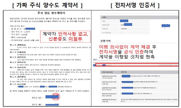 [이데일리 최훈길 기자] 주식거래 경험이 거의 없는 피해자 A씨는 지난 4월에 B사 주식의 사전공모 신청기간이라는 연락을 받았다. 그는 안내에 따라 S사 홈페이지를 통해 B사 주식 공모신청을 했다. 그러자 S사 직원이 연락했고 전환사채 물량 추가배정이라며 주주명부를 보여줬다. 이어 해당 주주명부상 대주주 중 한 명과 거래를 주선했다. 이에 A씨가 500만원을 입금했다. 하지만 상장 당일에 주식이 입고되지 않았다. 알고 보니 S사 홈페이지, 주주명부, 대주주 모두 가짜였다.