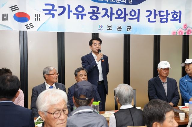 이날 간담회에는 최재형 보은군수, 최부림 보은군의회의장, 군의원, 국가유공자 등 100명이 참석해 오찬을 함께하며 국가유공자의 고귀한 희생과 숭고한 애국심 그리고 헌신에 존경과 감사의 마음을 전했다.
