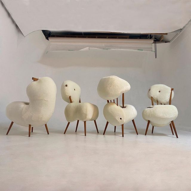 그래서인지 살롯 킹스노스의 하이!브리드 시리즈는 꼭 아기 동물을 묘사한 것처럼 보여요. 보라색 푸들을 떠올리게 하거나 점박이 토끼를 닮은 의자 등 ‘털’ 디자인을 재미있게 풀어냈죠.