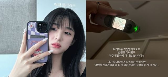 16일 율희는 개인 계정에 "여러부운 걱정말아요오오 병원도 다녀왔구 아주 팔팔하게 다 나왔습니다아~!!"라는 글과 함께 사진 한 장을 업로드했다.