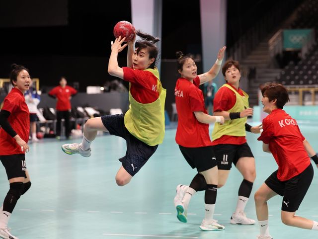 여자핸드볼국가대표팀 선수들이 23일(한국시간) 프랑스 사우스파리아레나에서 훈련 중이다. 한국선수단 유일의 구기종목인 여자핸드볼대표팀은 25일 오후 11시 같은 장소에서 독일과 대회 조별리그 A조 1차전을 치른다. 파리|뉴시스