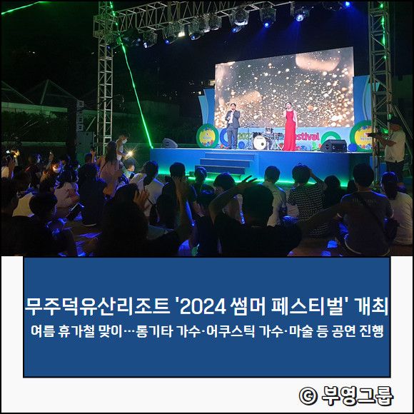 부영그룹 무주덕유산리조트 관계자는 "썸머 페스티벌이 올해는 티롤호텔 노천카페를 중심으로 새롭게 구성해 준비했다"며 "연인부터 가족까지 함께 무주덕유산리조트에 찾아와 무더운 여름을 잊고 함께 공연을 즐기길 바란다"고 말했다.