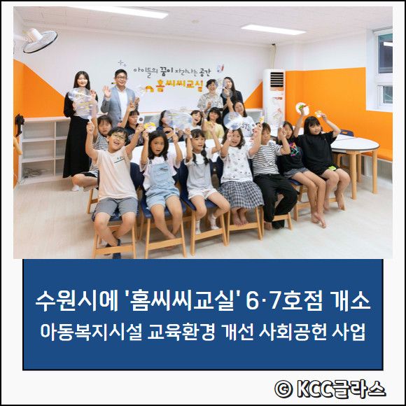 KCC글라스(344820)가 아동복지시설 교육환경 개선사업인 '홈씨씨교실'의 6호점과 7호점을 수원시에 개소했다.