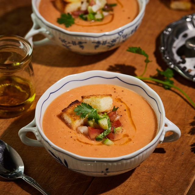 이열치열도 좋지만, 열기를 확 내려줄 시원한 음식이 필요하다면? 스페인 보양식인 토마토 냉수프, 가스파초에 도전해 보세요. 먼저 토마토 꼭지를 떼고, 칼로 열 십(十)자 자국을 냅니다. 그런 다음 팔팔 끓는 물에 넣고 돌려 가며 몇 초만 데쳐 주세요. 데친 토마토는 껍질을 다 벗겨서 적당한 크기로 썹니다. 껍질을 벗긴 오이와 씨를 제거한 파프리카도 준비해 적당히 썰어 주세요. 토마토, 오이, 파프리카, 그리고 약간의 소금과 후추를 다 같이 믹서기에 넣고 잘게 갈아 줍니다. 그릇에 옮겨 담고 냉장고에서 1시간 이상 숙성한 뒤, 올리브유를 살짝 두르면 완성입니다.