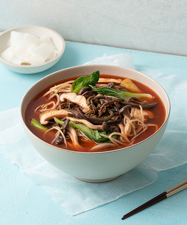 고사리, 토란대, 우거지 등의 채소를 끓는 물에 삶은 후, 먹기 좋은 크기로 잘라 찬물에 담가둡니다. 시원한 국물을 내기 위해 무도 채썰어 준비해 주세요. 좋아하는 버섯도 살짝 데친 후 찢어 놓고요. 고춧가루, 국간장, 들기름을 섞어 매콤하고 고소한 양념을 만듭니다. 냄비에 준비한 채소와 버섯, 양념장을 모두 넣어 버무린 뒤, 중불에 볶아 주세요. 그러다 채수를 넣어 한소끔 끓입니다. 마지막으로 소금, 후추로 간을 맞추면 완성입니다.