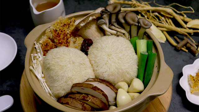 대파, 양파, 청양고추는 큼직하게 썰고, 마늘은 끝부분만 살짝 손질해 주세요. 노루궁뎅이버섯은 원래 모양 그대로 두고, 그밖에 취향껏 준비한 버섯들은 먹기 좋은 크기로 썰어 줍니다. 달궈진 냄비에 기름을 살짝 두르고, 대파, 양파, 청양고추, 마늘을 볶습니다. 양파가 투명해지면, 국간장을 넣고 조금 더 볶아주세요. 그다음 물과 삼계탕용 한약재 꾸러미, 통 대추를 넣고 끓입니다. 가장자리에 보글보글 기포가 올라오면 버섯을 넣어주세요. 살짝만 더 끓이다 한약재 망을 빼고 불을 끈 뒤, 채소 고명과 참기름을 올려 완성합니다.