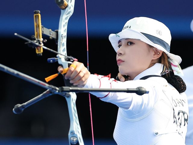 대한민국 양궁 여자 대표팀의 맏언니 전훈영(30·인천시청)이 양궁 여자 개인전 32강에 진출했다. 첫 세트를 내주고도 흔들리지 않고 내리 세 세트를 따냈다.