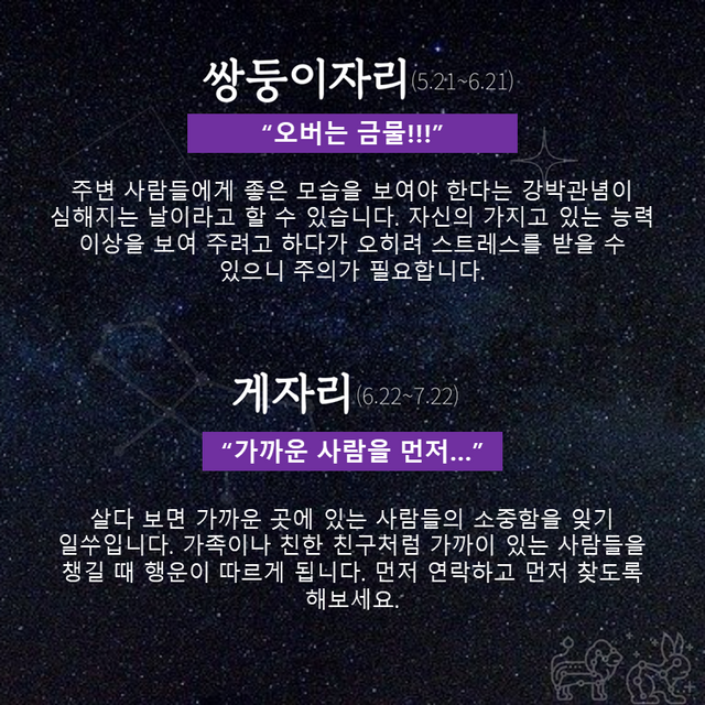 Δ 쌍둥이자리 : 오버는 금물!!!
