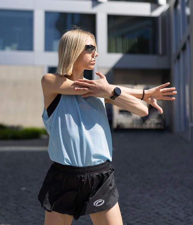 달리기에 대한 남다른 애정을 꾸준히 표현해온 모델 사라 달링. 골반 라인이 드러나는 쇼츠와 브라톱, 러닝 베스트는 그녀의 시그니처 러닝 룩이랍니다. 물통과 스마트폰, 이어폰까지 모두 수납이 가능하도록 가볍게 만들어진 러닝 베스트는 러닝코어의 치트키이니 눈여겨보세요.