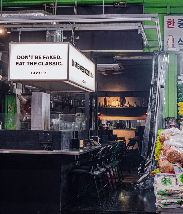 ‘힙당동’이라 불리는 신당동 중앙시장에는 각양각색의 식당과 술집이 즐비하다. 그 중 타케리아 ‘라까예’는 어디서도 맡아보지 못한, 압도적으로 이국적인 향을 풍긴다. ‘Don’t be faked. Eat the classic’이라 쓰인 전광판과 케밥처럼 고기를 켜켜이 쌓아 놓은 ‘트롬포’가 눈길을 끈다. 타케리아답게 소고기, 소 곱창, 양고기, 돼지고기 등 다양한 옵션의 타코 메뉴를 자랑한다. 입안을 조이는 강렬한 불맛, 육향의 고기, 아삭아삭 씹히는 채소의 조합도 훌륭하지만, 이곳의 가장 큰 차별점은 토르티야다. 라까예는 알이 거무튀튀한 ‘블루콘’ 품종의 옥수수를 직접 분쇄하고 반죽하여 당일에 구워낸 토르티야를 쓴다. 확실히 공장표 토르티야보다 옥수수 향이 생생하며, 수분감과 찰기가 느껴진다. 여기에 국내에서 보기 힘든 메스칼, 테킬라도 잔술로 판매한다. 소매 걷어붙이고 육즙, 채즙, 살사가 줄줄 흐르는 타코에 달큰한 아가베 스피리츠로 목을 축이고 배를 채우다 보면 멕시코시티 중앙시장에 온 듯한 기분 좋은 착각이 든다.