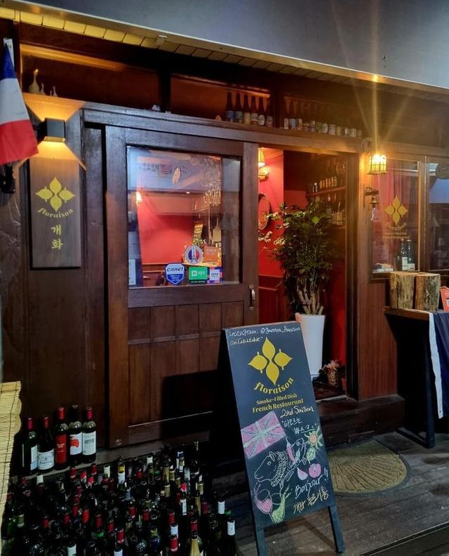 ‘엽전 도시락’이 유명한 통인시장. 이미 관광지화가 많이 진행됐음에도 여전히 시장의 기능을 하는 이 시장에 정통 프렌치 레스토랑이 있다. 청과점과 반찬 가게, 생선 가게, 쌀집 사이에 숨어 있는 아담한 크기의 ‘개화 플로이죵’이다. 외관은 물론 인테리어도 특이한데, 프랑스의 향취를 내면서도 동시에 조선의 개화기를 떠올리게 한다. 계절을 기점으로 메뉴를 바꾸는 개화 플로이죵은 크게 풀코스와 쇼트코스로 나뉜다. 다섯 가지로 구성된 풀코스의 정통 프렌치 음식이 단돈 7만원. 시장에 위치해 임대료가 비교적 저렴하고 신선한 식재료를 낮은 금액에 바로바로 공수할 수 있는 덕에 가능한 가격이다. 정겨운 시장을 구경하다 문을 열고 개화 플로이죵에 들어서는 순간, 조선인지 프랑스인지 알 수 없는 시공간으로 빨려 들어가는 듯하다. 바 석에 앉으면 셰프 혼자서 요리하고 서브하는 흥미로운 광경을 구경할 수 있다. 셰프가 직접 고른 프랑스 와인 리스트도 인상적이다.