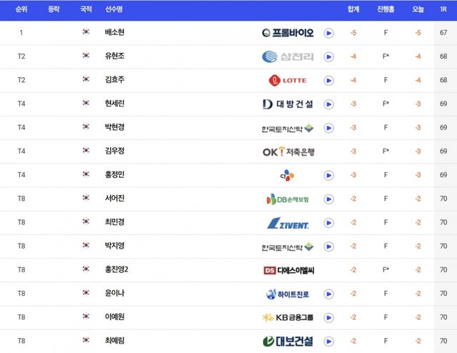 역시 시즌 3승의 이예원은 스폰서 대회에서 보기 없이 버디만 2개를 골라내 2언더파 70타를 쳐 시즌 3승의 박지영, 윤이나 등 6명과 공동 8위에 랭크됐다.