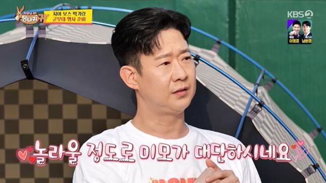 미모의 여성 셋에 둘러싸인 천명훈은 혼자 잔뜩 설렌 눈치였다. 그는 박기량을 지그시 바라보더니 “놀라울 정도로 미모가 대단하시다. 솔직하게 말씀드린다. 요즘 조심스러운 시대라 예쁘다고 해도 욕먹는다더라. 실물 깡패시다”고 감탄했다. 나홀로 소개팅 모드에 지켜보는 패널들을 웃음을 터뜨렸다.
