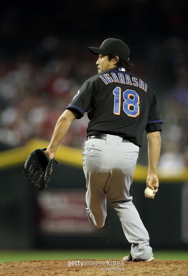이가라시는 오타니의 MLB 선배. 2010년 뉴욕 메츠에서 빅리그 데뷔해 3년 동안 활약했다. 통산 MLB 성적은 83경기 등판, 5승 2패 4홀드 평균자책점 6.41. 일본 프로야구(NPB) 구원왕 출신으로 NPB 통산 163홀드, 70세이브를 기록한 전문 불펜 자원이다. 소프트뱅크 호크스에서 뛴 2014년과 2015년, 각각 1점대 평균자책점으로 44홀드 31홀드를 따내기도 했다.