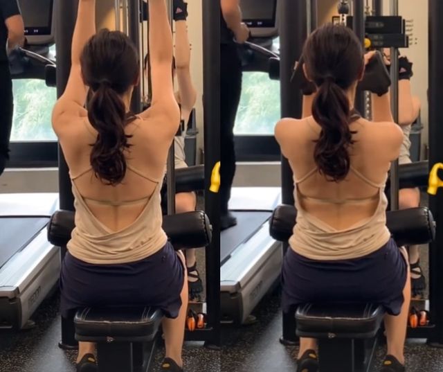 손예진은 기구를 이용해 상체 운동 중인 모습을 공개, 청순한 이미지 뒤에 숨겼던 탄탄한 등근육을 자랑해 눈길을 끌었다.