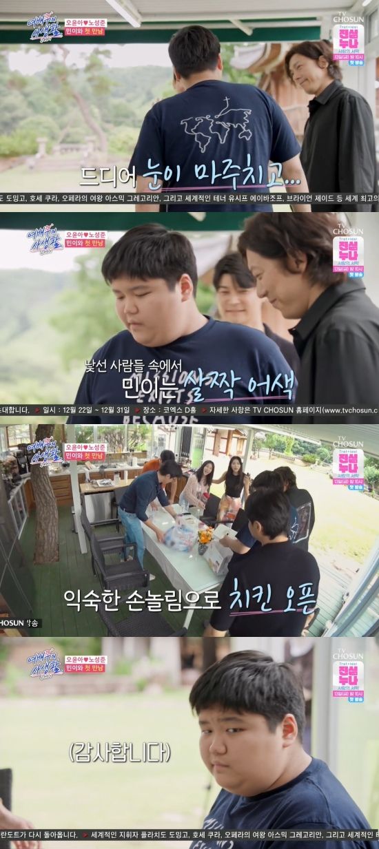 민이를 처음 본 오윤아의 썸남 노성준은 자리에서 일어나 반갑게 인사했고, 민이는 눈을 마주치며 하이파이브를 하기도 했다.