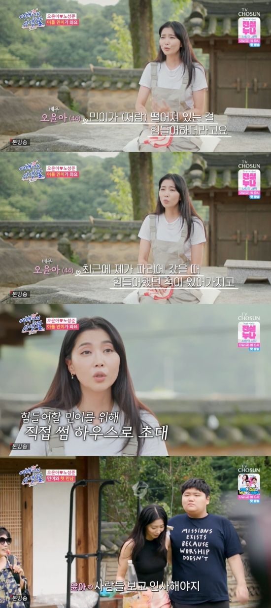 이날 오윤아는 "민이가 (저랑) 떨어져있는 걸 힘들어하더라"며 "최근에 제가 파리에 갔을 때도 힘들어한 적이 있다. 3일 정도 지나니까 되게 힘들어해서"라고 민이를 '썸 하우스'에 초대한 이유를 설명했다.