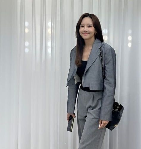 공개된 사진에는 2024 프리즈서울에 참석한 소유진의 모습이 담겼다. 그레이 셋업에 C사 명품백을 메고 패션 센스를 뽐내고 있다.