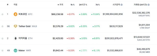 알트코인(비트코인 외 가상자산)의 대표격인 이더리움은 전일 대비 3.15% 상승한 2421달러(약 322만4772원)에 거래됐다. 같은 시간 업비트 기준 가격은 비트코인이 8043만6000원, 이더리움이 323만2499원에 거래됐다.