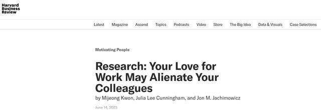 한편, 자신의 일을 아끼고 사랑하는 사람들은 자신의 일을 천직으로 여기기 때문에 도덕적 기준도 남다르다. 이들은 자신의 일을 개인적 성취감 이상의 도덕적 의무로 여길 가능성이 높다. 바로 이 장면에서 일을 사랑하는 것의 부정적 측면이 야기될 수 있다.