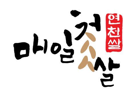 BI는 ‘매일첫쌀’의 자음 ㅊ, ㅅ, ㅆ을 활용해 벼 모양을 형상화하고 도장을 모티브로 한 캘리그래피다.