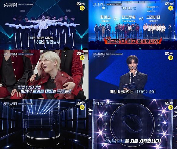 특히 이번 트리플 대진에는 평가전 '에이스 배틀'에서 최하위인 7위에 등극, 처음으로 팀 퍼포먼스를 선보이는 자리인 ‘팀 배틀’ 출전 기회를 박탈당한 크래비티를 비롯해 평가전 에이스 배틀에서 나란히 1, 2위를 차지한 원어스, 더크루원이 맞붙어 한 치의 양보 없는 승부가 펼쳐질 것으로 보인다.