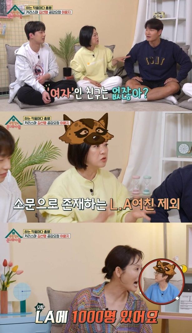 김숙은 "딸이 있다니까"라고 말했고, 김종국은 "딸이 이제 대학교에 들어간다. UCLA간다"며 "두 명이 있다. 아들도 있더라. LA에 있다. 딸은 UCLA다. 소문이 디테일하다. 졸업반이라더라"라며 자신의 소문에 체념한 듯한 모습을 보였다. 김종국은 "미국에 어머니와 여행을 많이 다니는데 첫 소문은 차태현이 냈다"고 전했다. 티파니 또한 LA에서 김종국을 목격한 바 있다고.