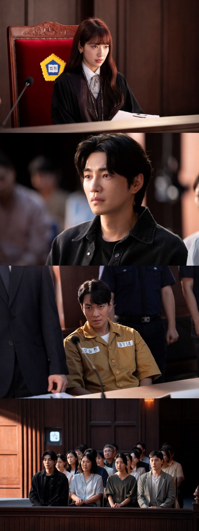 31일 공개된 스틸컷에는 법정에서 마주한 판사 강빛나, 피해자 유가족 한다온, 연쇄살인마 정태규의 모습이 그려졌다. 강빛나의 단호한 표정, 한다온의 절실한 눈빛, 여전히 반성의 기미조차 찾아볼 수 없는 정태규의 오만한 표정, 이 모든 상황을 지켜보는 연쇄살인마J 사건의 유가족들의 모습이 긴장감을 유발한다.
