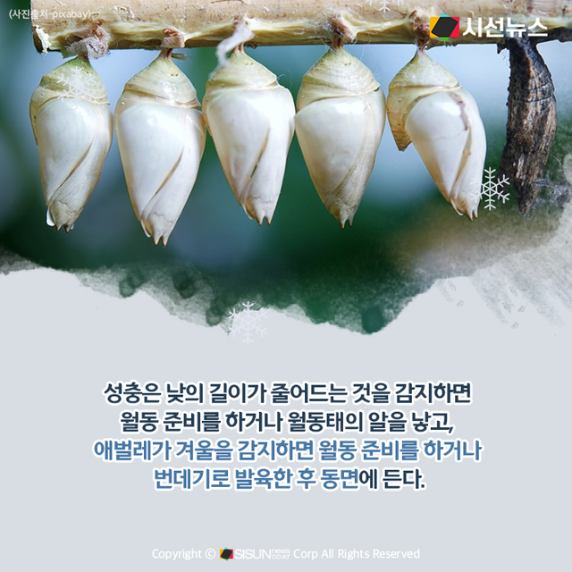 A. 모든 곤충이 겨울잠을 자는 것은 아니지만, 많은 곤충이 자신에게 적합한 모습으로 겨울잠을 자며 긴 겨울을 난다.