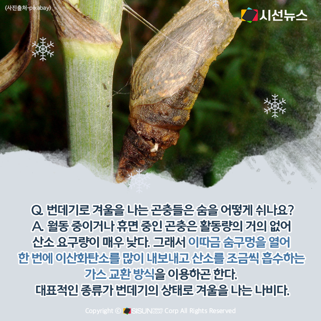 Q. 번데기로 겨울을 나는 곤충들은 숨을 어떻게 쉬나요?