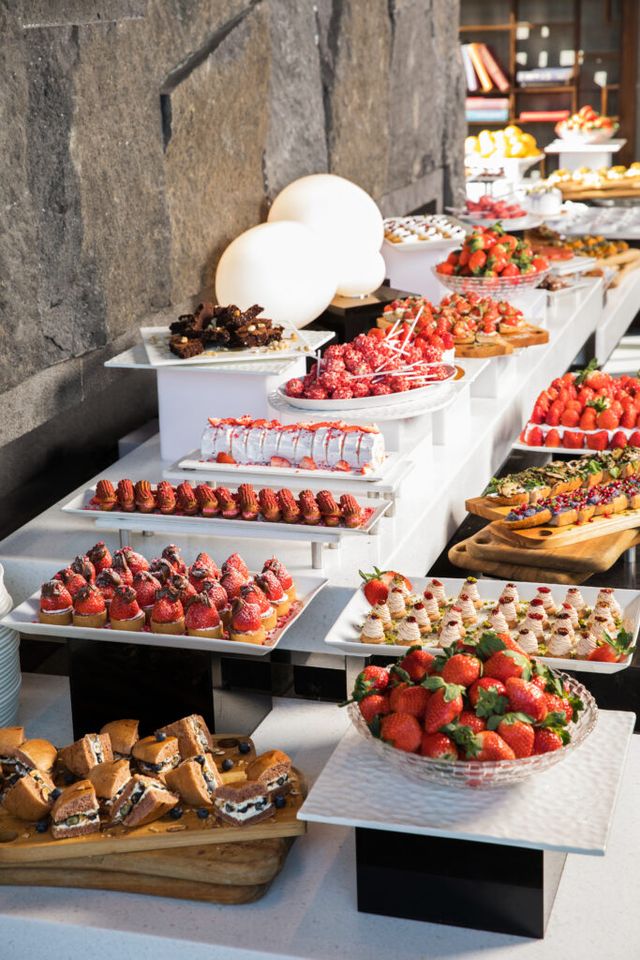 이번 뷔페의 콘셉트는 ‘파머스 마켓’으로, 산지에서 직송된 싱싱한 딸기를 다채롭게 경험할 수 있습니다. 그라넘 다이닝 라운지의 입구에는 갓 따온 딸기를 연상케 하는 포토존이 마련되어 있는데요. 레스토랑 내부에는 스탬프 이벤트 존이 마련되었으며, 딸기와 디저트를 자신만의 플레이트를 담을 수 있는 소소한 재미도 놓치지 않았어요.