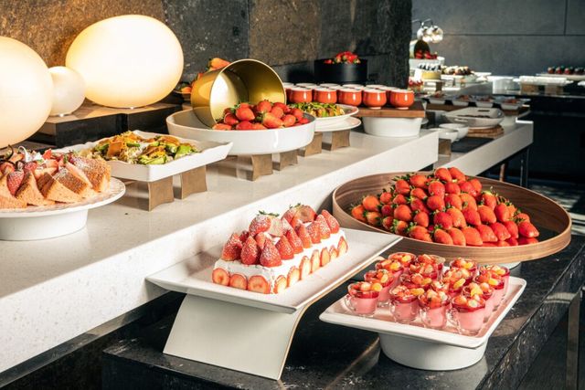 이번 딸기 뷔페는 세계적으로 사랑받는 아이스크림 브랜드 하겐다즈와의 협업으로 더욱 풍성하게 준비되었습니다. 그중에서 특히 눈길을 끄는 것은 바로 ‘하프 앤 하프’ 모나카 아이스크림인데요. 하겐다즈의 바닐라와 벨지안 초콜릿 아이스크림을 한 입에 맛볼 수 있는 것이 특징. 바삭한 모나카 속에서 부드럽게 녹아내리는 하겐다즈 아이스크림이 잊지 못할 맛을 선사하죠. 이 외에도 신선한 딸기로 만든 디저트 메뉴와 다양한 스낵, 샐러드를 만나볼 수 있습니다. 웰컴 드링크 및 커피와 차도 포함되어 있어 디저트와 음료의 완벽한 궁합까지 즐길 수 있어요.