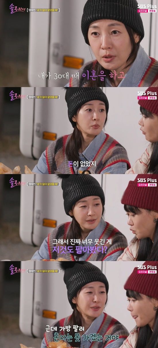 이어 명세빈은 "아껴둔 가방도 팔았다"며 "혼자는 못가겠어서 친구한테 '같이 가달라'해서 팔아봤다. 근데 그게 땅끝까지 추락하는 느낌은 아니었다. 그게 잦다보니까 그 다음에 우울했다"고 당시 심정을 고백했다.