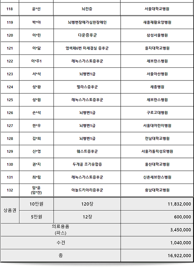 난치병 어린이들을 위해 5천만원 기부한듯