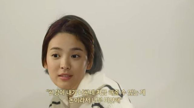 그러면서 “돈의 액수가 중요한 게 아니라 혜교 언니가 그때 당시 해줬던 그 말 한마디가 지금도 가끔씩 문득문득 생각난다”라며 “‘내가 너한테 지금 해줄 수 있는 게 돈이라서 너무 미안해. 같이 있어줘야 되는데. 사람이 이렇게 힘들 때 네 옆에 있어주지 못하고 내가 너한테 돈으로 줘서 그게 내가 너무너무 미안해’ 이렇게 말을 했는데 그때 진짜 가슴으로 많이 울었다”라고 당시 송혜교가 해줬던 말을 언급하며 울컥한 모습을 보였다.