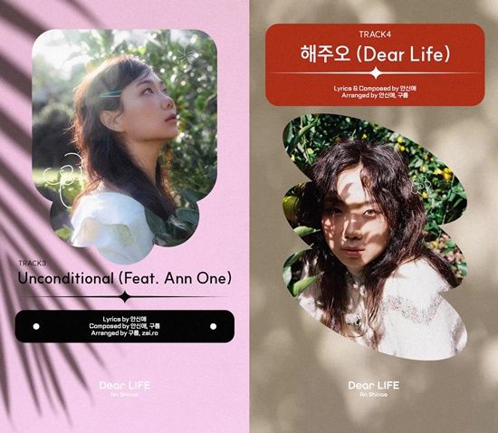 앤원이 피처링에 이름을 올린 라틴 팝 장르의 ‘언컨디셔널’는 무조건적인 사랑은 누구도 아닌 내가 나 자신에게 할 수 있다는 ‘셀프 러브’에 관한 곡이다. 마지막으로 안신애가 가장 애착을 갖고 있는 트랙 ‘해주오’에는 우리의 일상에서 음악이 가지는 의미를 담아냈다.