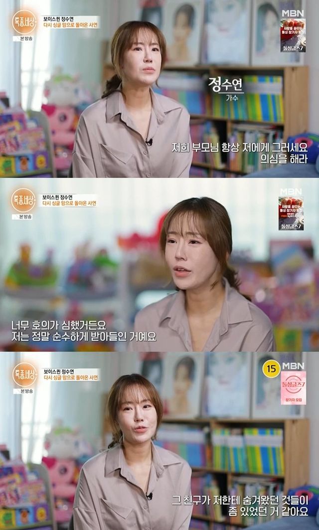 (엑스포츠뉴스 이창규 기자) '보이스퀸' 우승자인 정수연이 두 번째 이혼을 한 이유를 전했다.