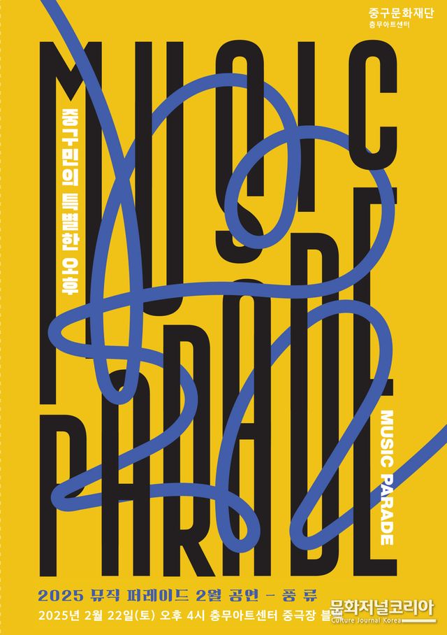 문화저널코리아 김영일 기자 | 중구문화재단(사장 조세현)은 중구민의 특별한 오후를 위한 뮤직퍼레이드 ‘풍류’ 공연을 이달 22일 16시 충무아트센터 중극장 블랙에서 개최한다.