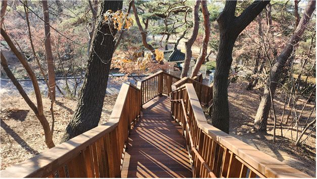 재단에 따르면 기존 콘크리트와 돌계단이 있던 자리에 목재 데크를 설치해 걷기 좋은 환경을 조성했으며 좁은 계단 폭을 넓히는 등 방문객이 더욱 안전하고 쾌적한 환경 속에서 수목을 즐길 수 있도록 재정비했다.