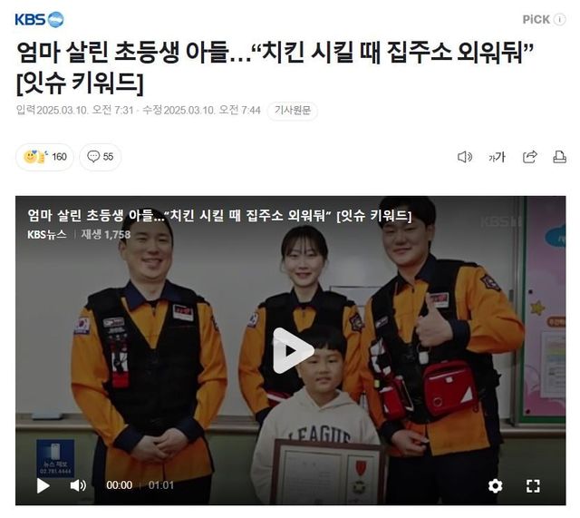 9살 초등학생이 갑자기 쓰러진 어머니를 심폐소생술로 살려내 화제입니다.