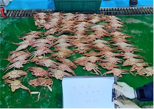 해양수산부는 지난해 11월부터 지난 2월까지 3개월간 ‘국내산 암컷 대게 불법유통 특별단속’을 실시했다고 13일 밝혔다. 단속 결과 경북 포항의 한 유통업체가 적발됐다.